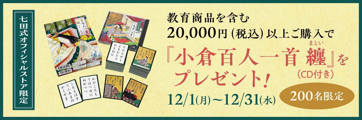 「教材」を含む商品を20,000円(税込)以上ご購入の方、先着200名さまに『小倉百人一首 纏(まとい)』をプレゼントいたします。