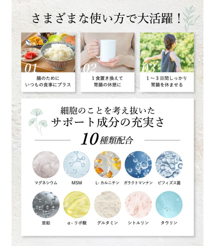 1 ~ 3 日間のファスティングに自信のない方や年配の方などにおすすめ