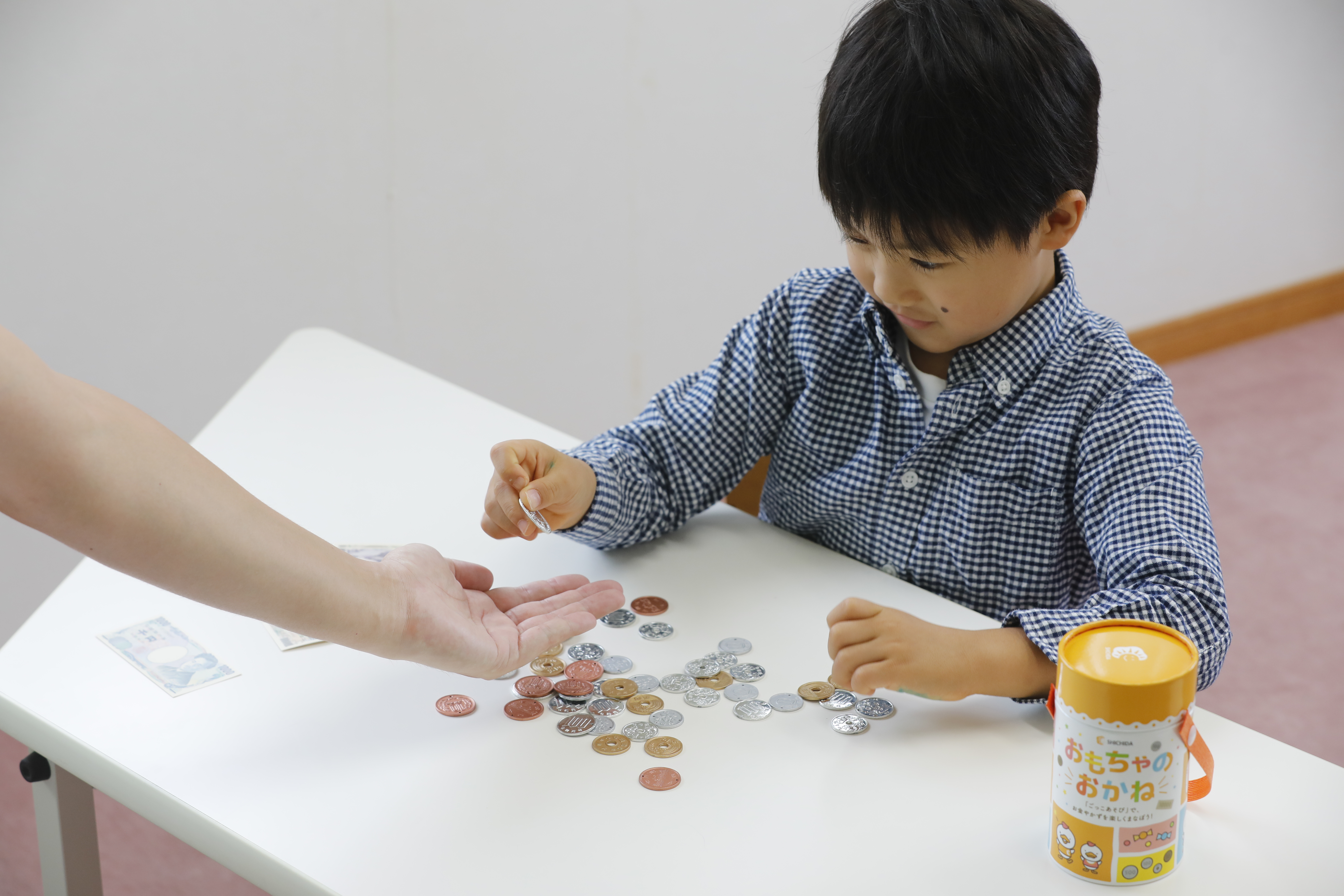 「ごっこあそび」や「両替あそび」を通して、楽しみながら金銭感覚を身につけ、物の価値を感覚的に学ぶことができます。