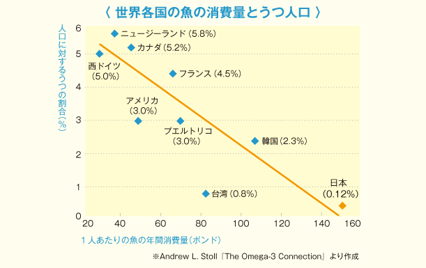 外食やコンビニ弁当・出来合いの惣菜、インスタント食品などは、一見便利で、多忙な現代人の強い味方のようですが、近年、それらに使用される「油」の過剰摂取が、うつなどの症状を招いていることが問題視されています。うつは「心」ではなく「脳」の病気。人間の感情や思考は全て脳が司っていて、その脳の60%以上は「油」です。つまり、どの油を摂るかが、脳の質を決めるのです。青魚などに含まれる「オメガ-3」脂肪酸を多く摂るほど、脳の働きは改善され、感情や思考も良好になります。魚を多く食べる国ほど、うつ患者が少ないといわれるのはそのためです。一方、口にする油が、肉や上記のような加工食品等に多く含まれる「オメガ-6」脂肪酸ばかりの場合、脳の細胞膜は固くなり、その働きが鈍るだけでなく、全身における健康上のリスクも高まります。今日から油の摂り方を変えましょう!