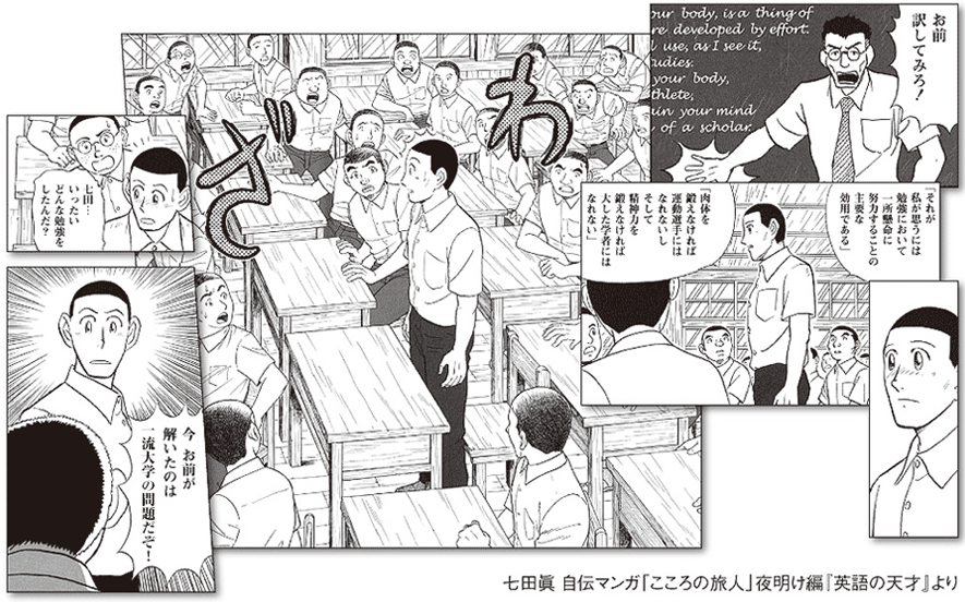 2学期が始まった時、七田眞は授業で突然指名されたハイレベルな英文を、辞書もなしにスラスラと英訳し、クラス中を驚かせました。