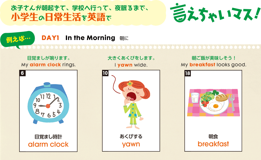 『言えちゃいマスター英単語1000』は、イラストを見ながらリズムにのって楽しく英単語を覚えられるから、お子さんが英語学習に夢中になれます。英単語の記憶は何よりも大切ですが、それを適切な表現で実際に話せることも重要です。