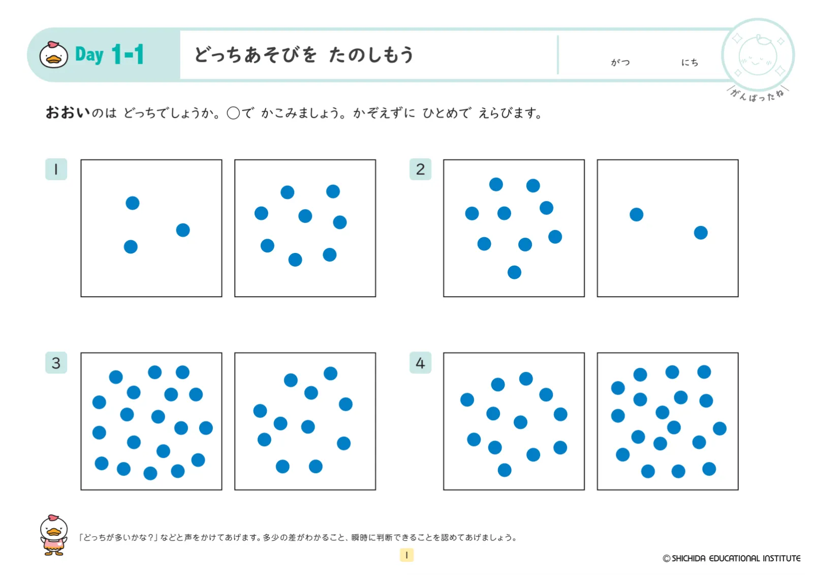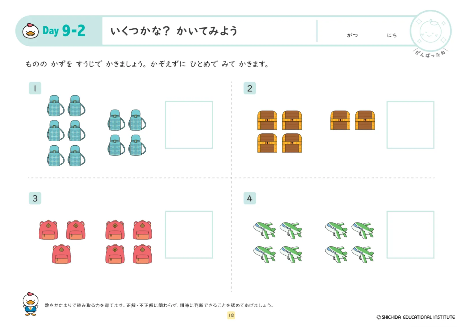 が育ちます。その力が基礎となり、複数の、もののかたまりを見て、瞬時にいくつあるかがわかるようになります。