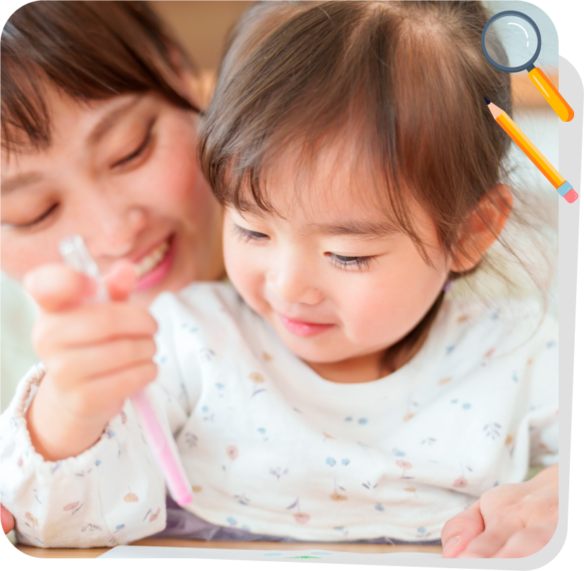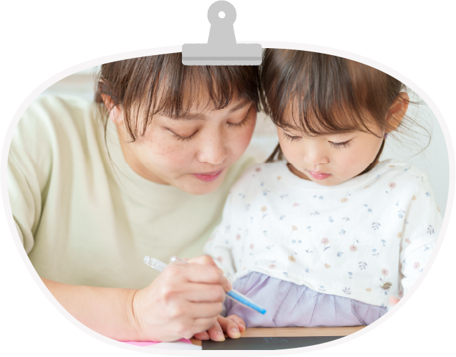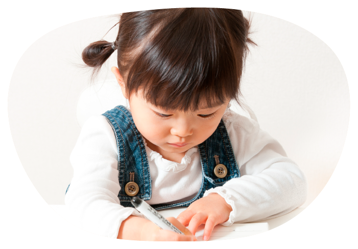 まだ鉛筆が持てなくても大丈夫!鉛筆を正しく持って書く練習へとつなげられるよう、細かなステップを踏んで進めていきますので、安心して取り組んでいただけます。