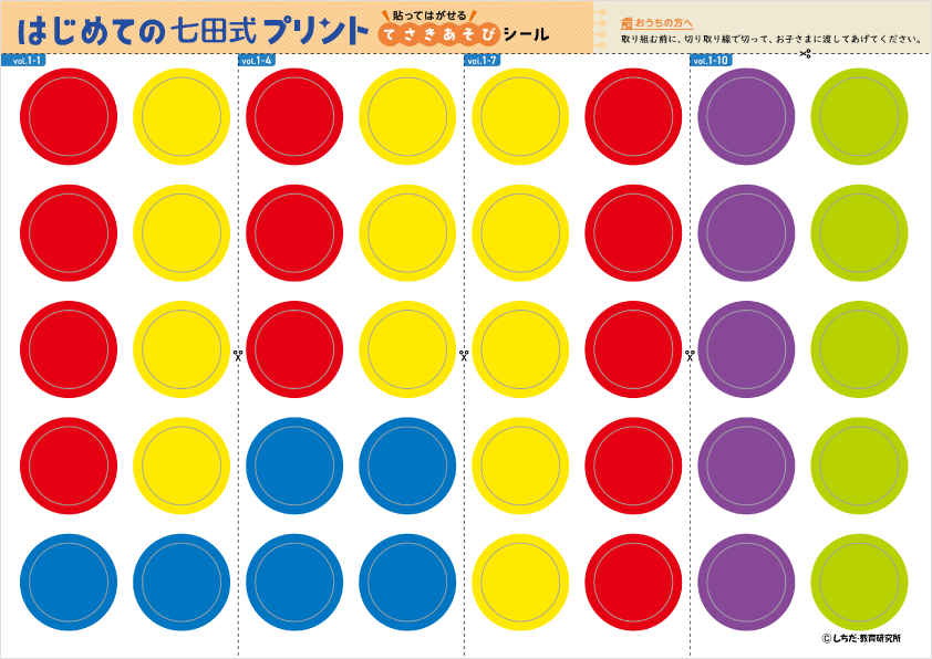 はじめての七田式プリントは学習の前に必要となる基礎を身につけるための、1歳半からはじめられるプリント教材です。