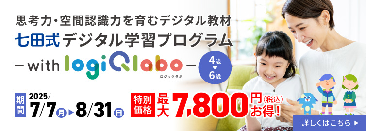 オンライン動画とワークブックで楽しみながら、英語で七田式に取り組める教材! 毎日の2ステップで、インプットとアウトプットを繰り返すことで、自然と英語が身につきます。