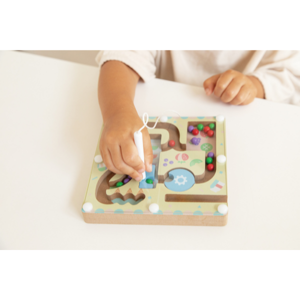 マグネットペンを持つ手の形は、鉛筆の持ち方と同じだから、遊びながら「運筆」の練習にもぴったり!