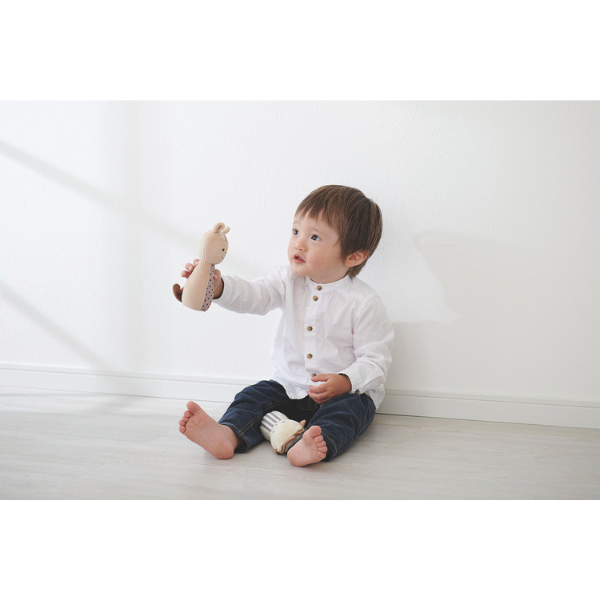 もし汚れてしまっても、洗濯機のソフト洗いコースや手洗いが可能です。 なんでも口に入れたり舐めたりしてしまう低月齢のお子さまへも、安心して遊ばせてあげることができます。