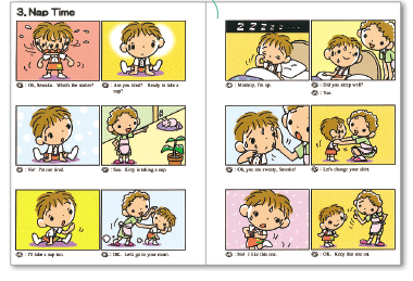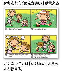 この教材を使う前に、いろいろな英語CDやDVDのサンプルを試してみました。歌が好きなので、英語の歌にしようと思っていたのですが、子どもの反応がいまひとつだったのと、短いフレーズの日常英会話を聞く方が、英語の回路ができると聞いたので、『さわこの一日』に決めました。内容も2〜3歳児の日常生活を再現した子どもに身近なものですし、本当に短い言葉なので、耳にすっと入って、口に出しやすいようです。マンガのようなテキストもついているので、会話の意味もわかりやすく、応用しやすいのではないかと思います。ずっと続けていったら、1年後、2年後どうなるのかと今から楽しみです。