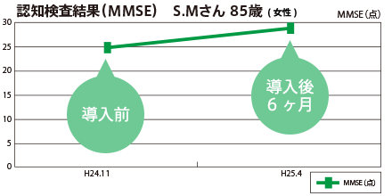 ※MMSEとは、Mini Mental State Examination(ミニメンタルステート検査)の略で、1975年に、米国のフォルスタイン夫妻が考案した世界で最も有名な知能検査。簡便な検査方法であり、被験者に対して口頭による質問で検査し、30点満点で判定したもの。