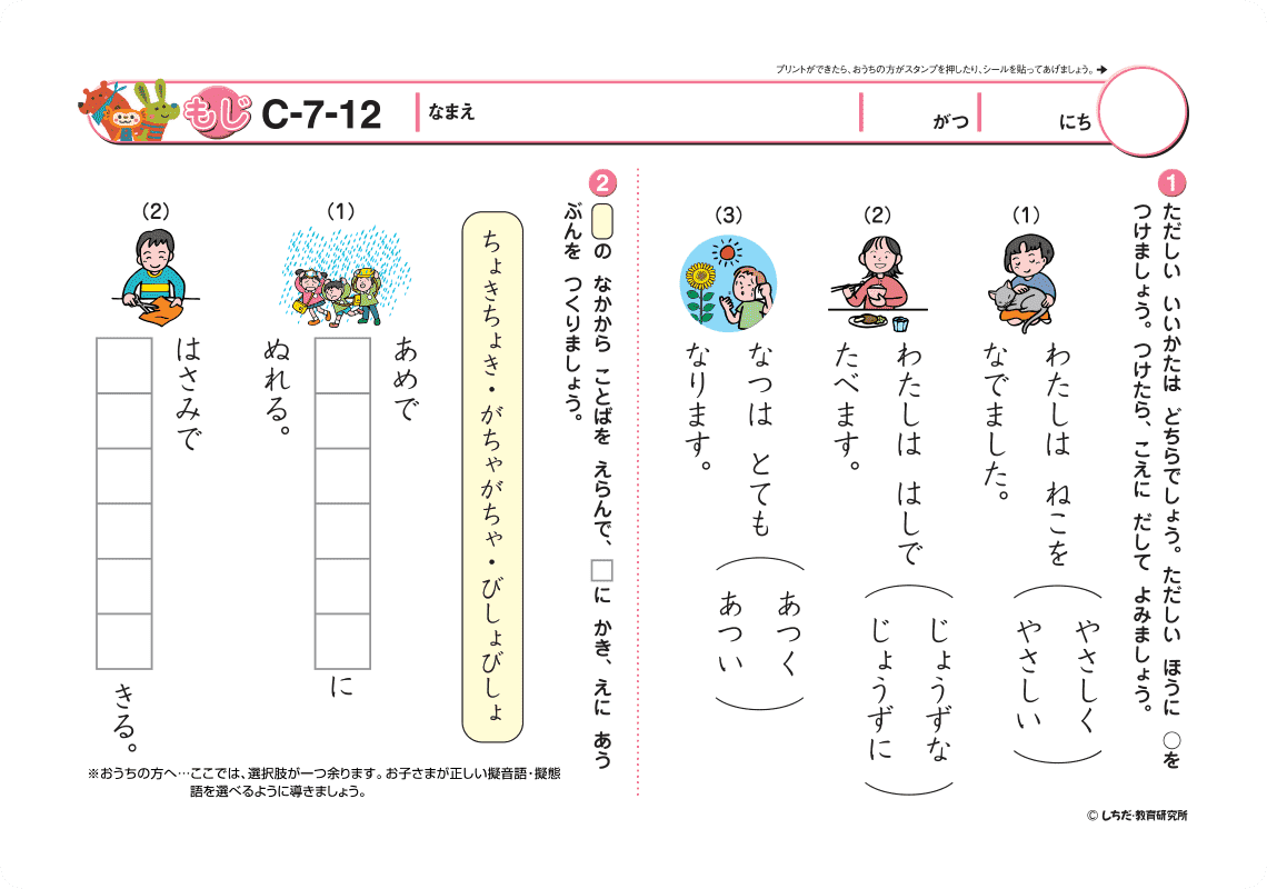 七田式プリントは、自宅で取り組める学習プリントとして、