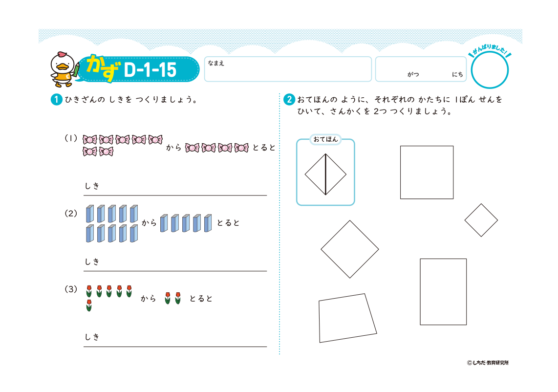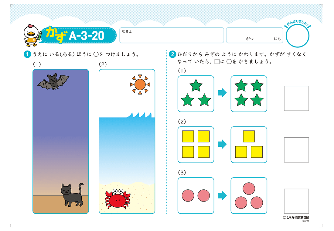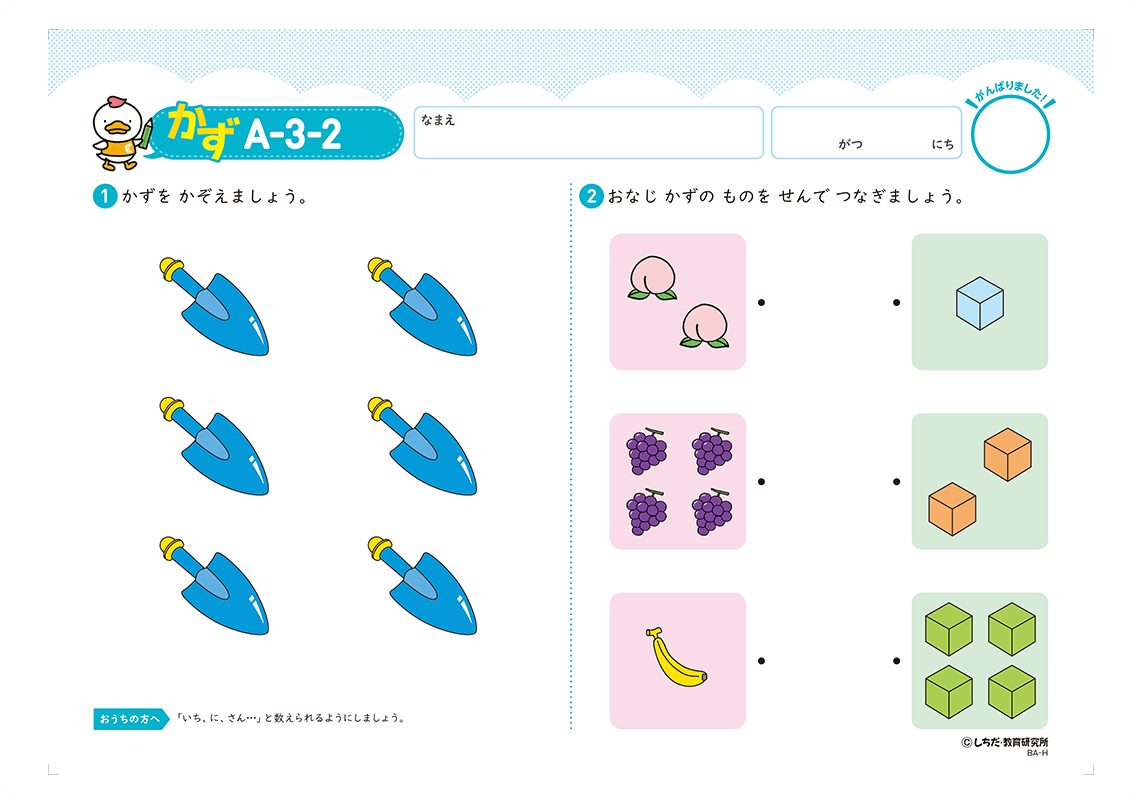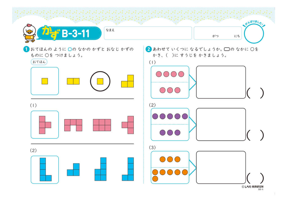 無理なく取り組める1日3枚を継続することが学習習慣の定着につながり、就学後の学習への取り組みがとてもスムーズになります。 「もっとやりたい!」と言われた場合は、プリント以外の取り組みや、その子の好きな遊びをさせてあげましょう。