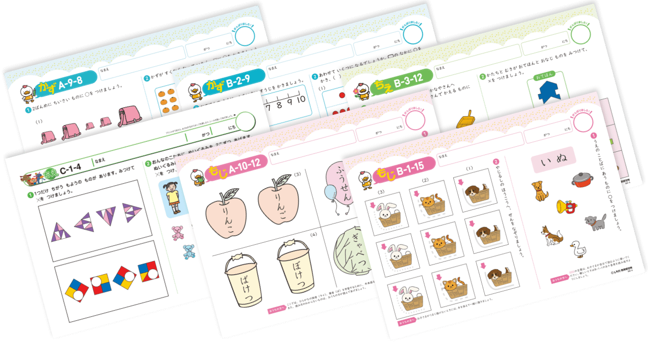 見た目にもお子さまの興味を引きやすく、問題の内容もお子さまに身近なテーマを