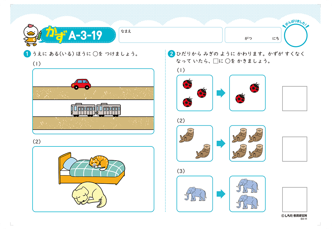 最初は、得意な「ちえ」以外の「もじ」と「かず」の分野はまだ難しかったようで、本人も苦手な問題があるとすぐ「できないよ~」と言っていました。