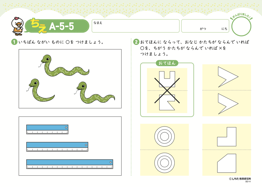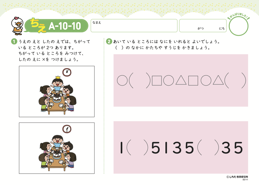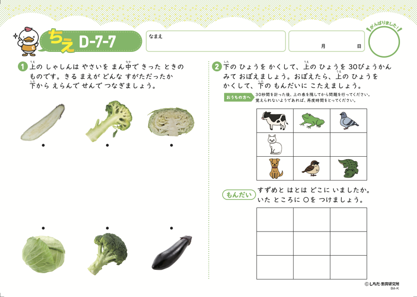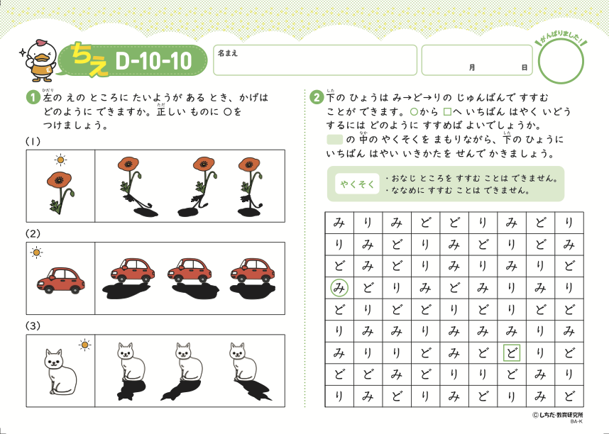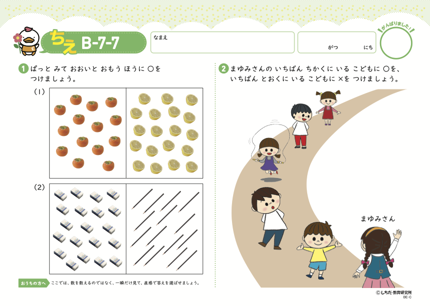 迷路や間違い探し、図形問題などを通じて、観察力や推理力を養います。
