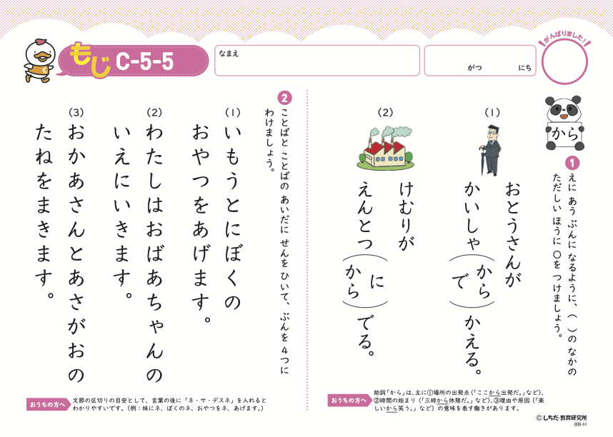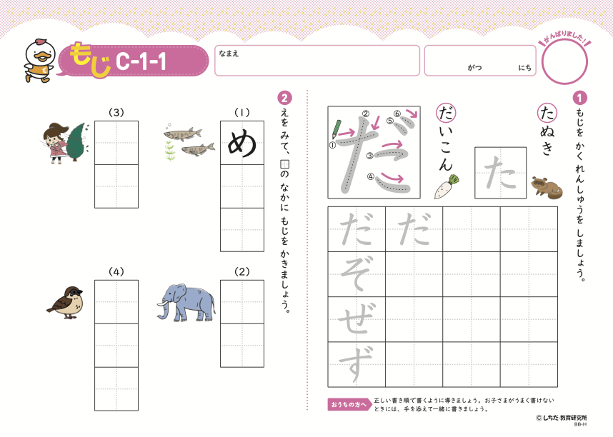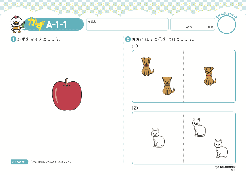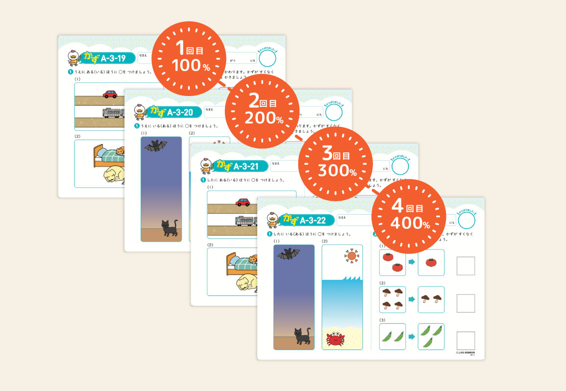ただ、お子さまにとってやさしく取り組めるレベルの問題からスタートすることで「できた!」という達成感、おうちの方の「すごいね!」のほめ言葉が喜びになり、プリント好きになるお子さまが多いようです。